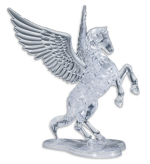 Krystalové puzzle 3D - Pegas - 42 dílků, HCM Kinzel. Trojrozměrné puzzle z barevného průhledného plastu z různě tvarovaných dílků. 3D model může mít podobu bájného pegase (s křídly) nebo koně vzpouzejícího se na zadních (bez křídel). prečítať celé