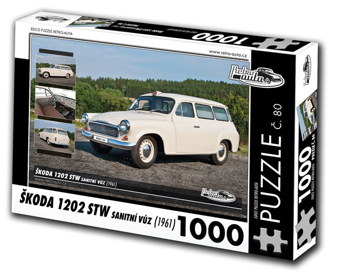 Retro auta Puzzle č. 80 - ŠKODA 1202 STW Sanitní vůz (1961) - 1000 dílků