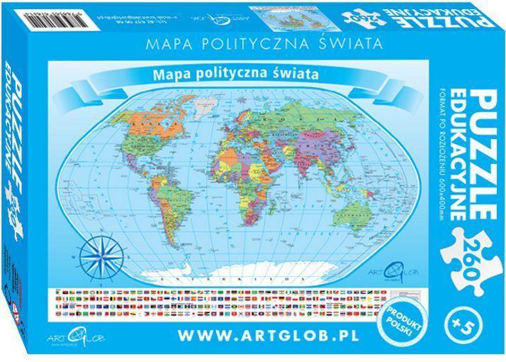 Puzzle edukacyjne. 260 elementów. Mapa polityczna świata (polsky)