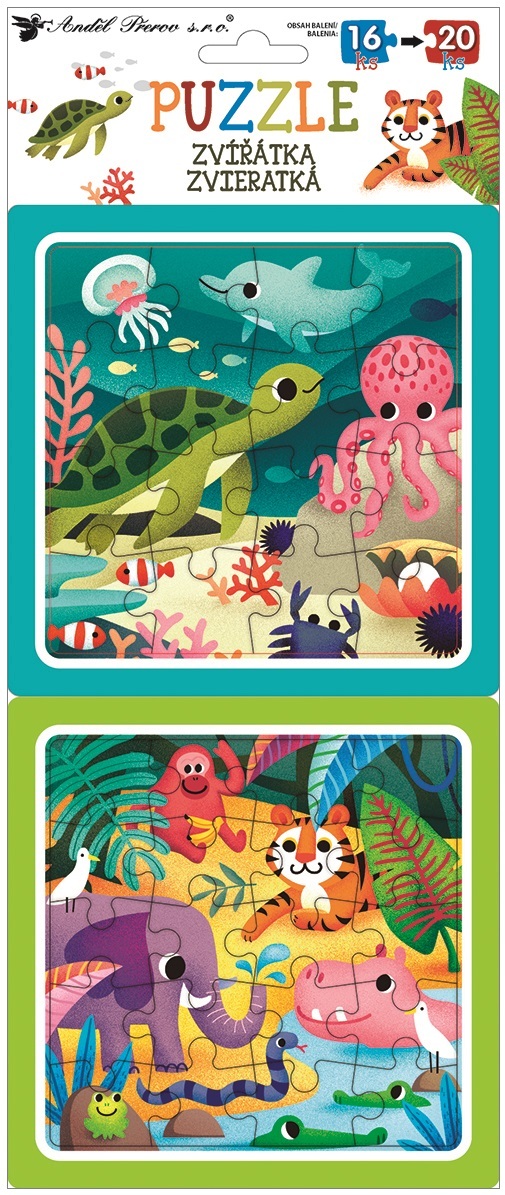 Puzzle 2 obrázky 15 x 15 cm, 16 a 20 dílků, zvířátka
