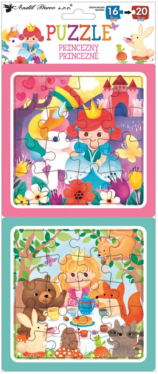 Puzzle 2 obrázky 15 x 15 cm, 16 a 20 dílků, princezny
