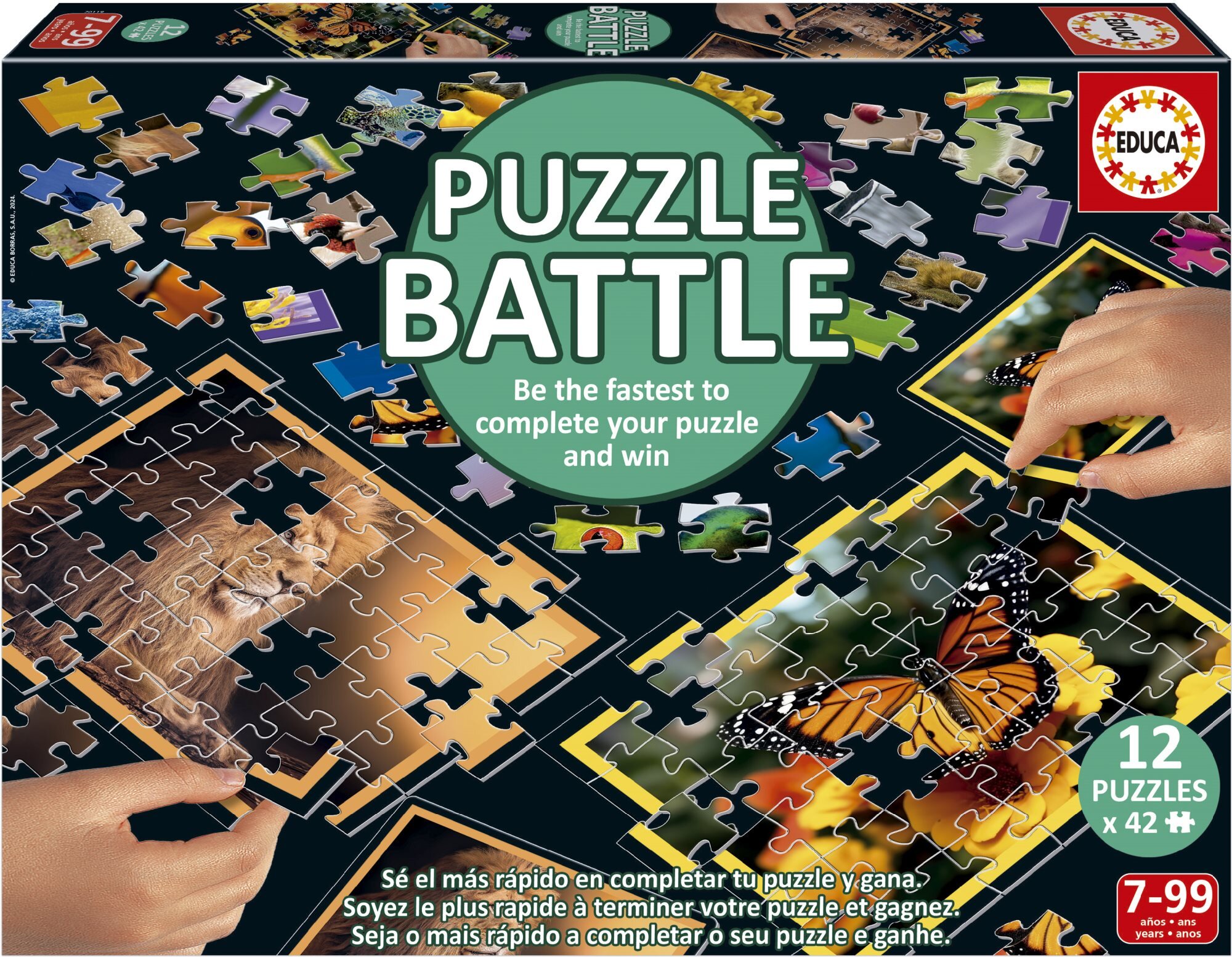 Unikátní výzva v podobě puzzle bitvy od výrobce Educa. Spojení klasického skládání puzzle se zaměřením na rychlost. Uspořádejte souboj proti kamarádům, sourozencům nebo rodičům. Rozvoj koordinace oka a ruky, rychlosti, trpělivosti a pozorovacích schopností. Balení obsahuje: 12 puzzle, každé s...