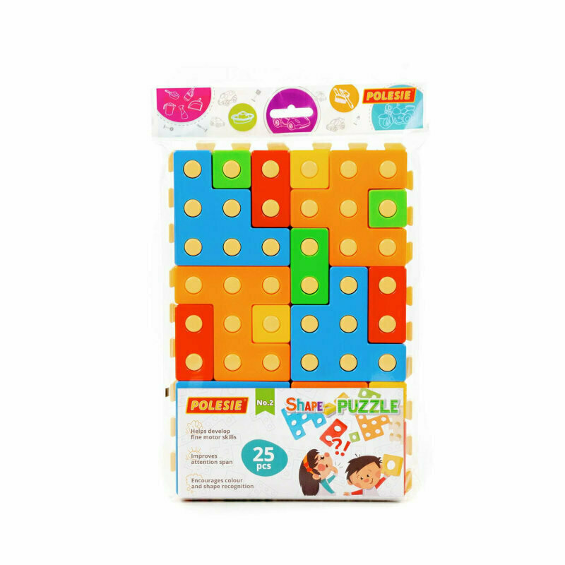 Zabawka rozwojowa Ułóż puzzle nr 2 składa się z 25 elementów. Wśród elementów znajdują się puzzle i figury o różnych kształtach geometrycznych. Figurki należy umieścić na elementach układanki tak, aby pole gry było całkowicie wypełnione.Wymiary opakowania i produktu: 19,5x29x2cmWiek: 1+