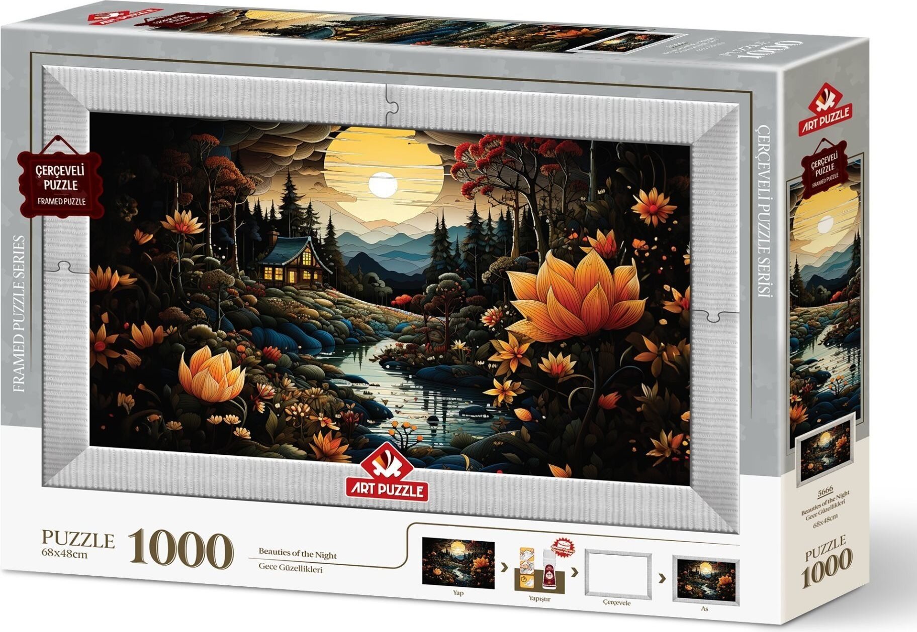 ART PUZZLE Puzzle s rámem a lepidlem 3v1 Noční krásky 1000 dílků