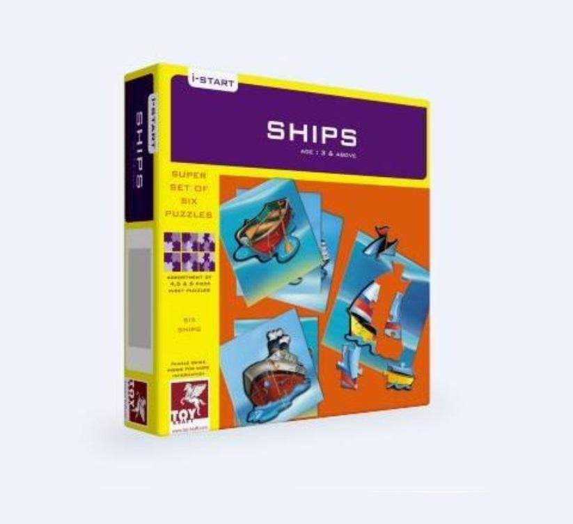 SUPER ZESTAW SZEŚCIU ŁODZI . Zestaw składa się z 6 obrazków ( puzzli) przedstawiających łodzie. Każdy z tych obrazków (puzzli ) składa się z - od 4 do 6 elementów. Każdy obrazek posiada odpowiadającą mu kształtem i wymiarami ramkę, w której powinien być ułożony przez dziecko.