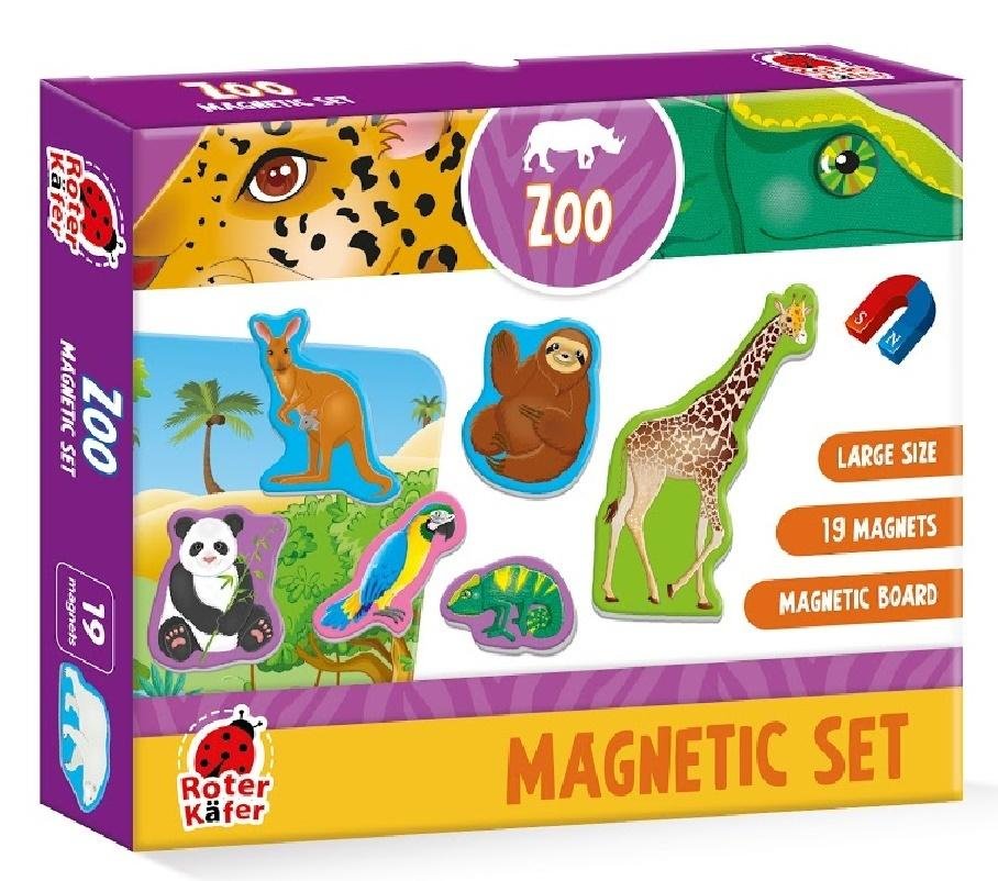 Zwierzęta w zoo bywają różne! Chcecie dowiedzieć się o nich więcej?Zestaw magnesów zapozna dziecko z różnymi zwierzętami. Uczycie się ich nazw, dowiadujcie się, co one jedzą i jak mówią, zapamiętajcie ich właściwości.W zestawie także magnetyczna tablica z obrazem malowniczego pejzażu. Grać można...
