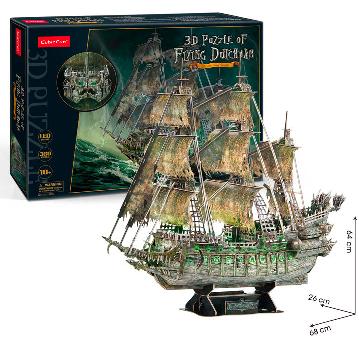 Išlo o trojrozmerné puzzle predstavujúce slávnu loď Lietajúceho Holanďana so spolu 360 dielikmi. Vďaka špeciálnemu materiálu pripomínajúcemu penu sú dieliky ľahké a ľahko sa skladajú. Všetky dieliky sú číslované a predrezané, takže nie je potrebné používať žiadne náradie, lepidlo ani vyvíjať väčšiu silu. Postupujte podľa priloženého návodu a behom chvíľky budete mať doma pôsobivý model o rozmeroch 68 x 26 x 64 cm.