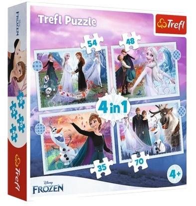 Magia w lesie to puzzle dla dzieci składające się z 4 niezależnych układanek, zaprojektowane z myślą o wszystkich fanach i fankach Krainy Lodu. Po ułożeniu puzzli powstaną cztery obrazki o wymiarach 285 x 205 mm każdy. Zróżnicowana liczba elementów (35, 48, 54, 70) pozwala na zabawę zarówno młodszym, jak i nieco starszym fanom puzzli.