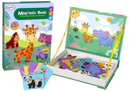 Magnetyczna Układanka Książka Zwierzęta Puzzle Krokodyl Małpka Zabawka rozwinie swoje funkcje poznawcze oraz nauczą się kreatywnego myślenia, koncentracji i samodzielności. W zestawie znajdują się karty przedstawiające zwierzątka, zadaniem malucha jest ułożenie magnetycznych elementów według...