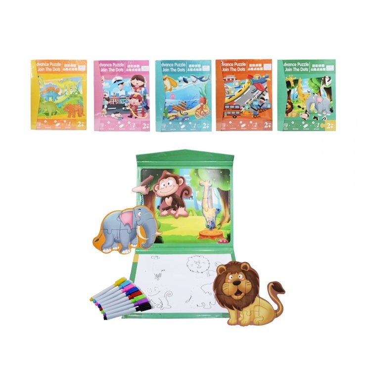 Zábavné a kreativní učení. Balení obsahuje knížku (na jedné straně pro domalování a druhé straně pro dotvoření obrázků), barevné fixy a maxi puzzle. Možnost výběru z pěti druhů – dopravní prostředky, povolání, dinosauři, mořský svět nebo safari zvířátka. Nevhodné pro děti do 3 let. Rozměr je 23 x 30 x 1,5cm.