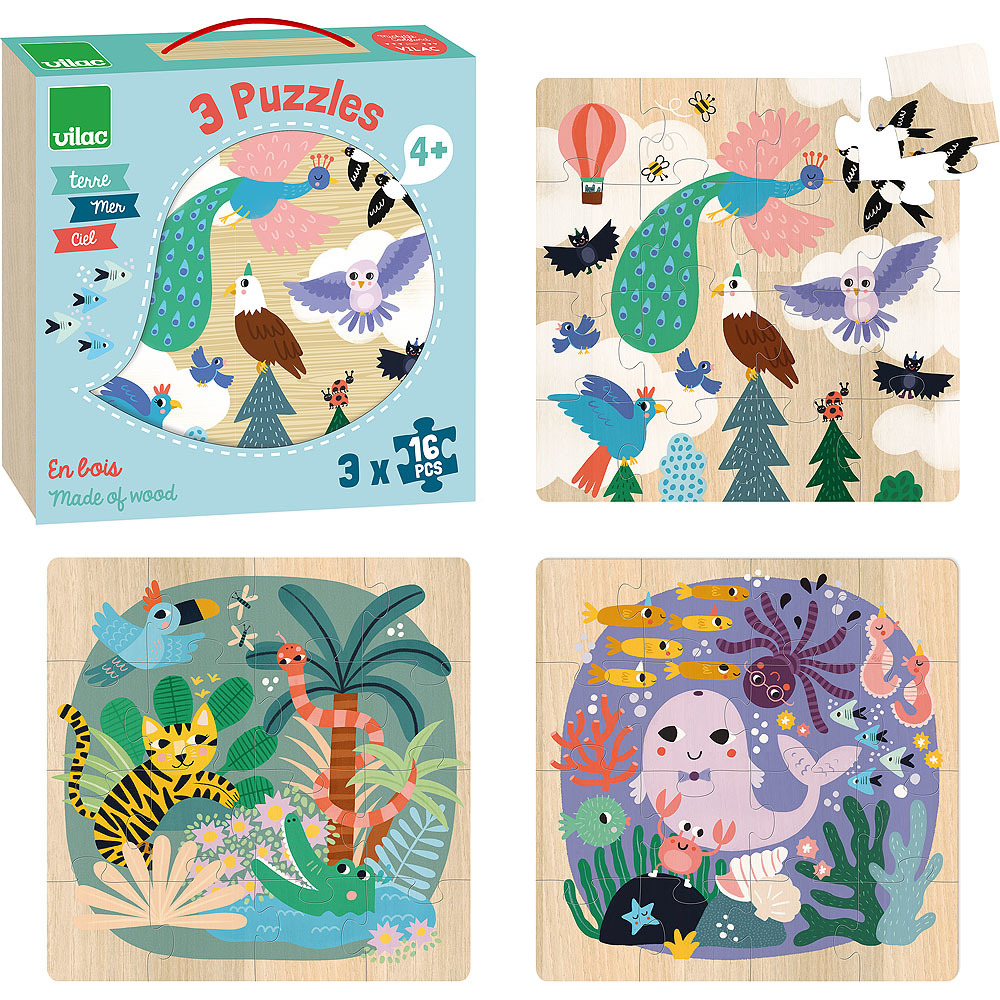 Vilac Dřevěné puzzle Moře země vzduch