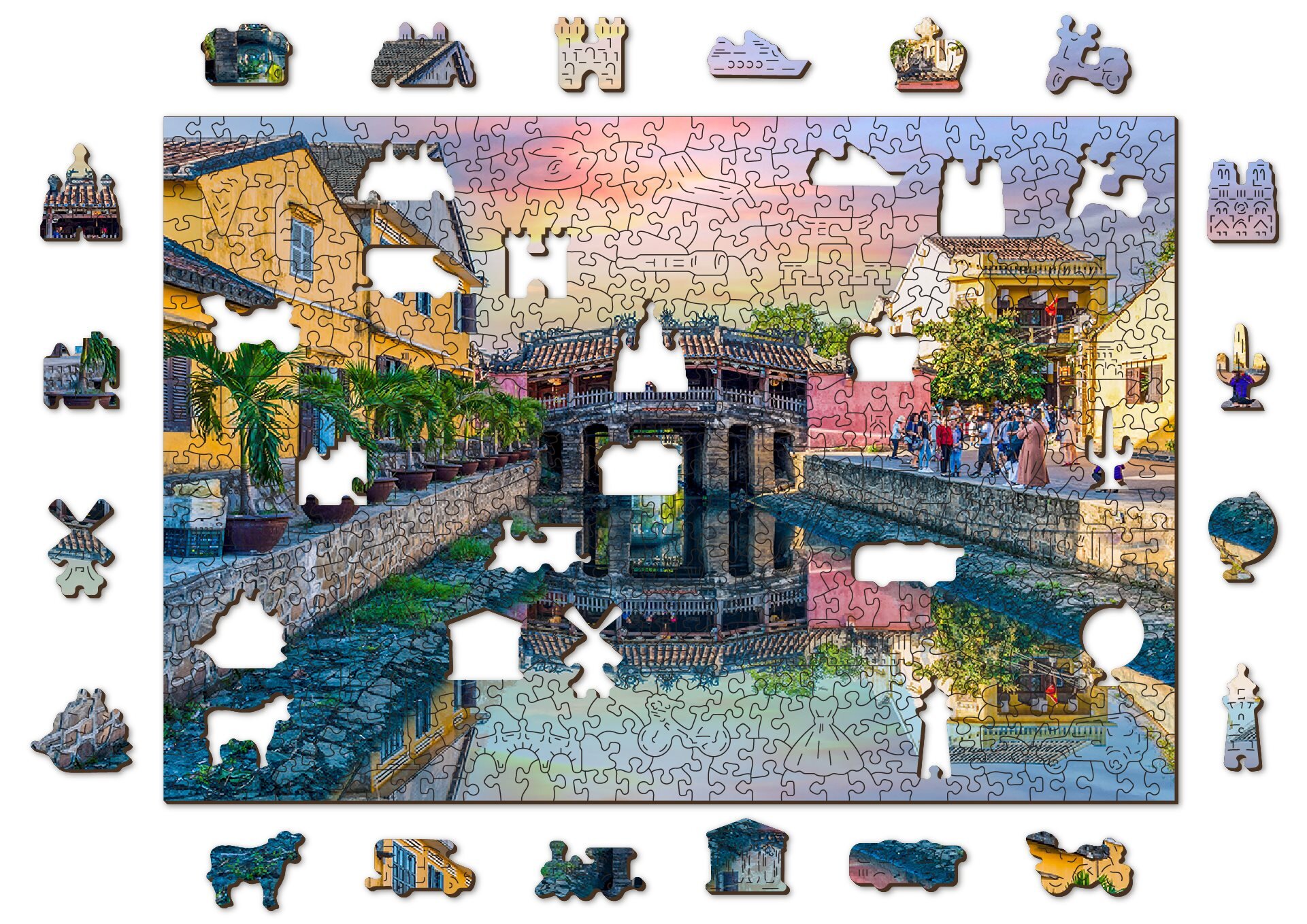 WOODEN CITY Dřevěné puzzle Japonský most ve městě Hoi An, Vietnam 2v1, 505 dílků EKO