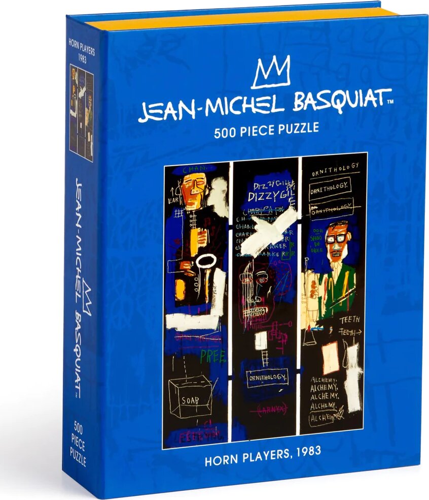 Puzzle Basquiat: Hráči na lesní roh v obalu ve tvaru knihy je obměnou klasického 500 dílného puzzle.