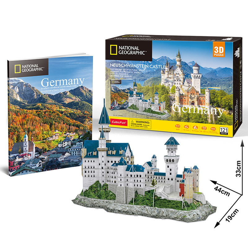 Neuschwanstein je jedním z nejznámějších památek v Německu .Puzzle zámku krále Ludvíka II složíte ve 3D z 98 dílů.Rozměry: délka 42 cm.Doporučený věk od 6 let prečítať celé