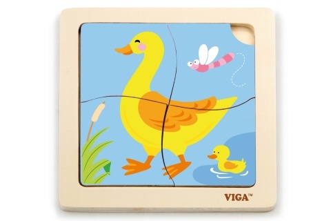 Dřevěné puzzle kachna, obrázek o rozměru cca 12 x 12 cm. Rozměry balení cca 15 x 15 x 1 cm. Věk 18m+ prečítať celé