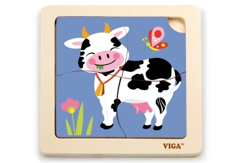 Dřevěné puzzle kráva, obrázek o rozměru cca 12 x 12 cm. Rozměry balení cca 15 x 15 x 1 cm. Věk 18m+ prečítať celé