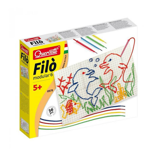 Vyšívací souprava určená dětem od 5 let. Sada obsahuje 16 šňůrek ve čtyřech základních barvách, 4 speciální pera určená k vyšívání, 6 vyšívacích desek, 10 spojovacích elementů a 4 předlohy, kterými se začátečníci mohou řídit. Obrázky se tvoří zasouváním šňůrek pomocí speciálních per do otvorů...