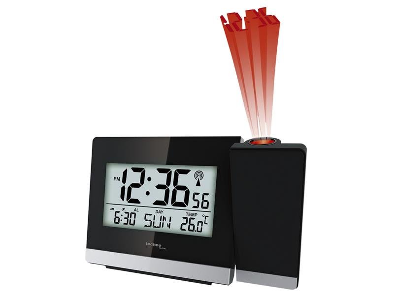 Projekce času má červenou barvu. Tubus projektoru pro projekci času je snadno nastavitelný.