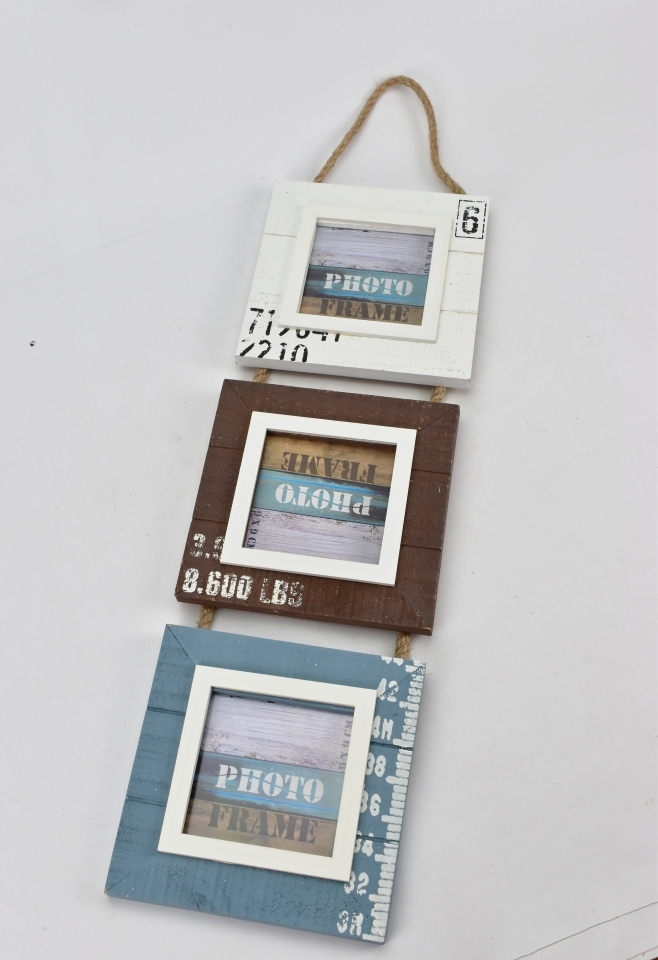 Krásný a originální závěsný fotorámeček určený na tři fotografie. II. jakost z důvodu chybějící zádi na jednom rámečku.Rozměry:délka 46 cmšířka 14 cm prečítať celé