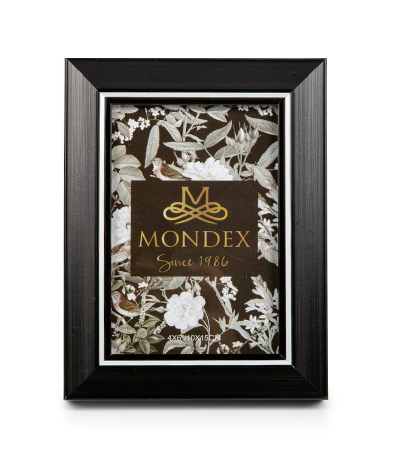 Ramka na zdjęcia z serii ADI marki MONDEX. Wykonana z tworzywa szucznego. Rama jest w kolorze czarnym.Rozmiar zdjęcia to 10x15cm lub mniejsze z zastosowaniem passe-partout. Ramkę można postawić jak również powiesić w...