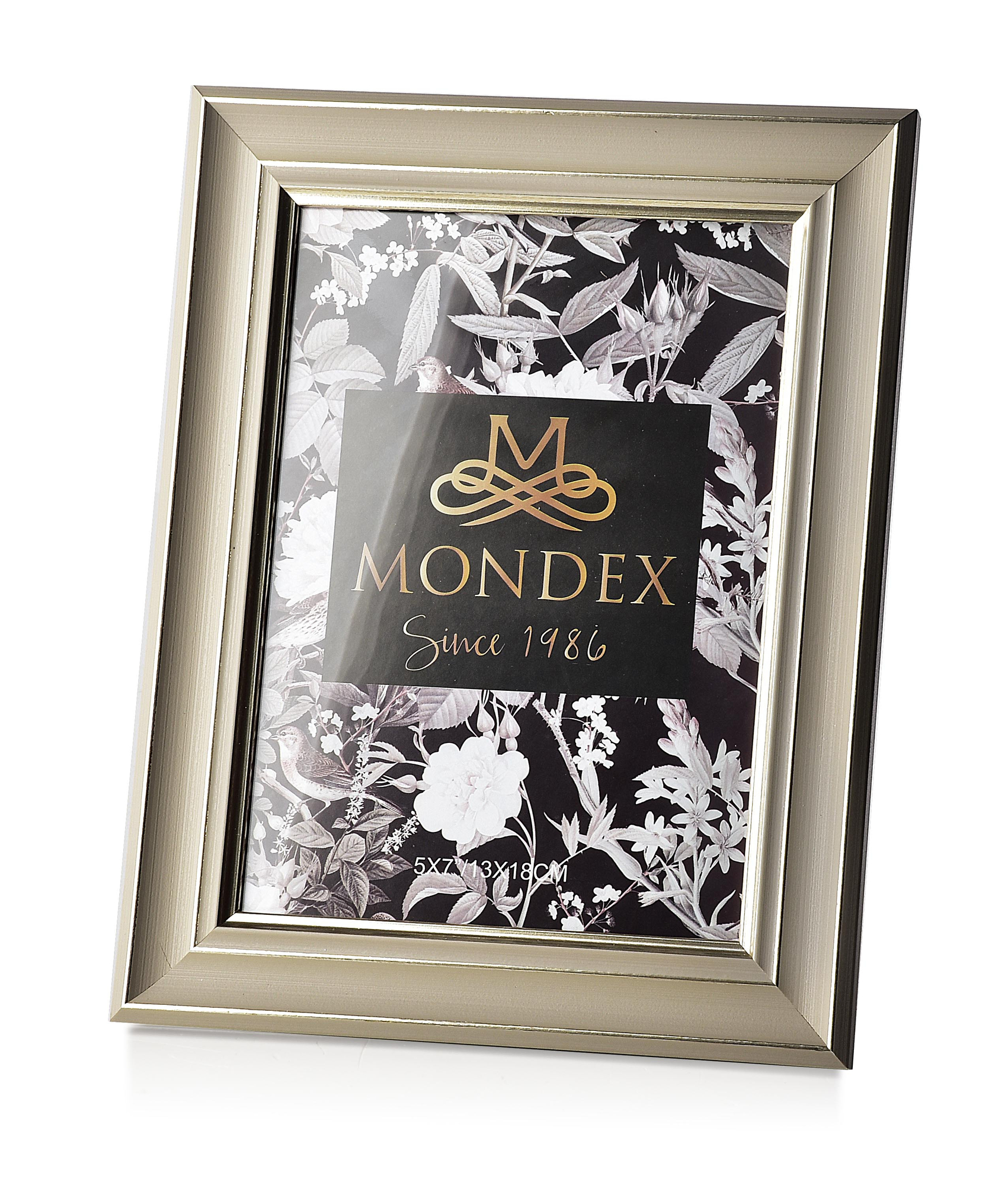 Ramka na zdjęcia z serii ADI marki MONDEX. Wykonana z MDF-u. Rama jest w kolorze szaro, beżowym z przetarciami złotymi. Rozmiar zdjęcia to 13x18cm. Ramkę można postawić jak również powiesić w pionie lub poziomie. Zapakowana jednostkowo w folię. Wymiar całości:DŁUGOŚĆ ł 23.00 cm SZEROKOŚĆ ł 18.00 cm WYSOKOŚĆ ł 1.00 cm