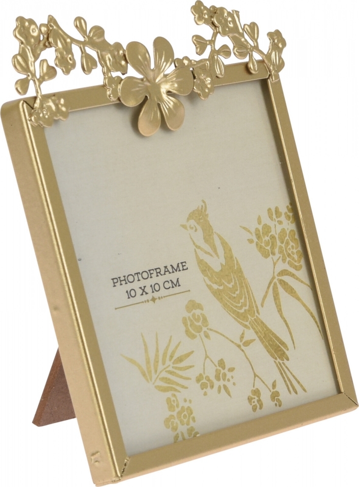 Kovový fotorámik zlatý s kvetmi 12x10x1 cm