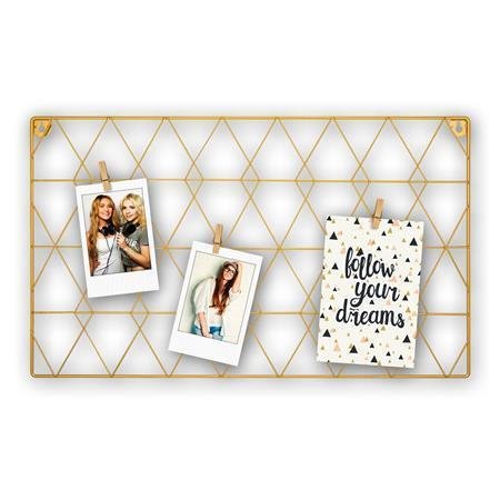 Rám s geometrickým zdobením se třemi dřevěnými kolíčky na umístění fotografií.Lze zavěsit na zeďRozměr: 30 x 50 cmBarva: zlatá prečítať celé