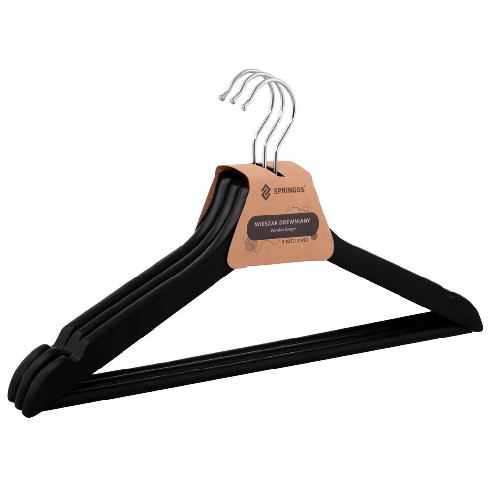 Sada 3ks ramínek na šaty a další oblečení. Masivní dřevěné provedení, lakované do černé barvy. Klasický tvar, šířka 43 cm. Spodní tyčka, postranní prohlubně. Praktický doplněk vaší skříně.Praktický doplněk každé skříněRamínka SPRINGOS URBAN dokonale uspořádají vaše šaty a další oblečení....