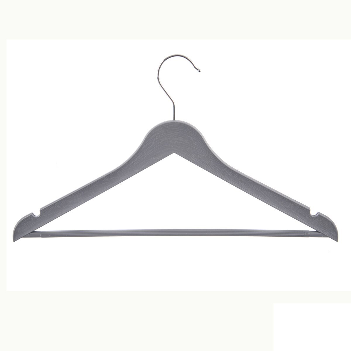 Ramínko s otočným háčkem pro zavěšení. Možnost zavěšení kalhot nebo kravat na spodní tyčce a sukní na postranní háčky. Materiál: plast PP, galvanizovaný kov. Plastický dekor struktury dřeva. Sada 3 ks. Šedá. Rozměry: 42x1x23,7 cm. prečítať celé