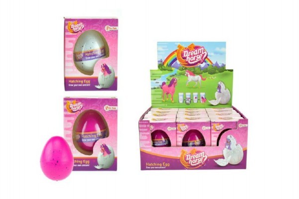 Vejce líhnoucí a rostoucí jednorožec kůň plast 6cm asst 2 barvy v krabičce 7x10x5cm 12ks v boxu
