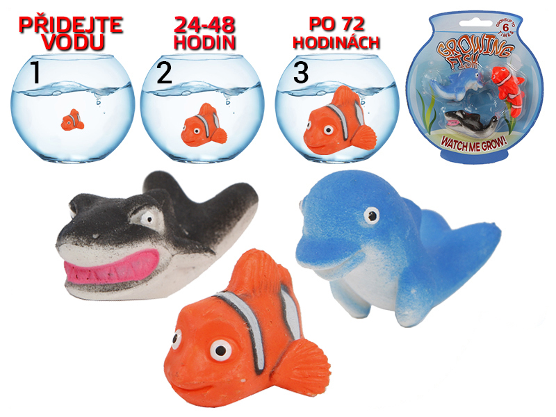 Rybičky rostou, jako by byly živé! Naplň nádobu vodou, ponoř a sleduj. Rybky začínají růst už po 24 hodinách, ale plné velikosti dosáhnou až po 72 hodinách. Po vytažení z vody stačí ryby osušit a po pár dnech se vrátí do původního stavu. prečítať celé
