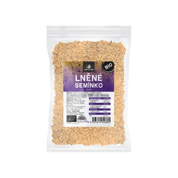 Lněné semínko zlaté BIO je pěstováno podle zásad ekologického zemědělství. Od hnědého semínka se liší tím, že má výraznější oříškovou chuť. Hodí se pro pečení moučníků i pečiva. Vegani ho používají jako náhradu vajec. Při pravidelném používání příznivě působí na zažívací problémy.