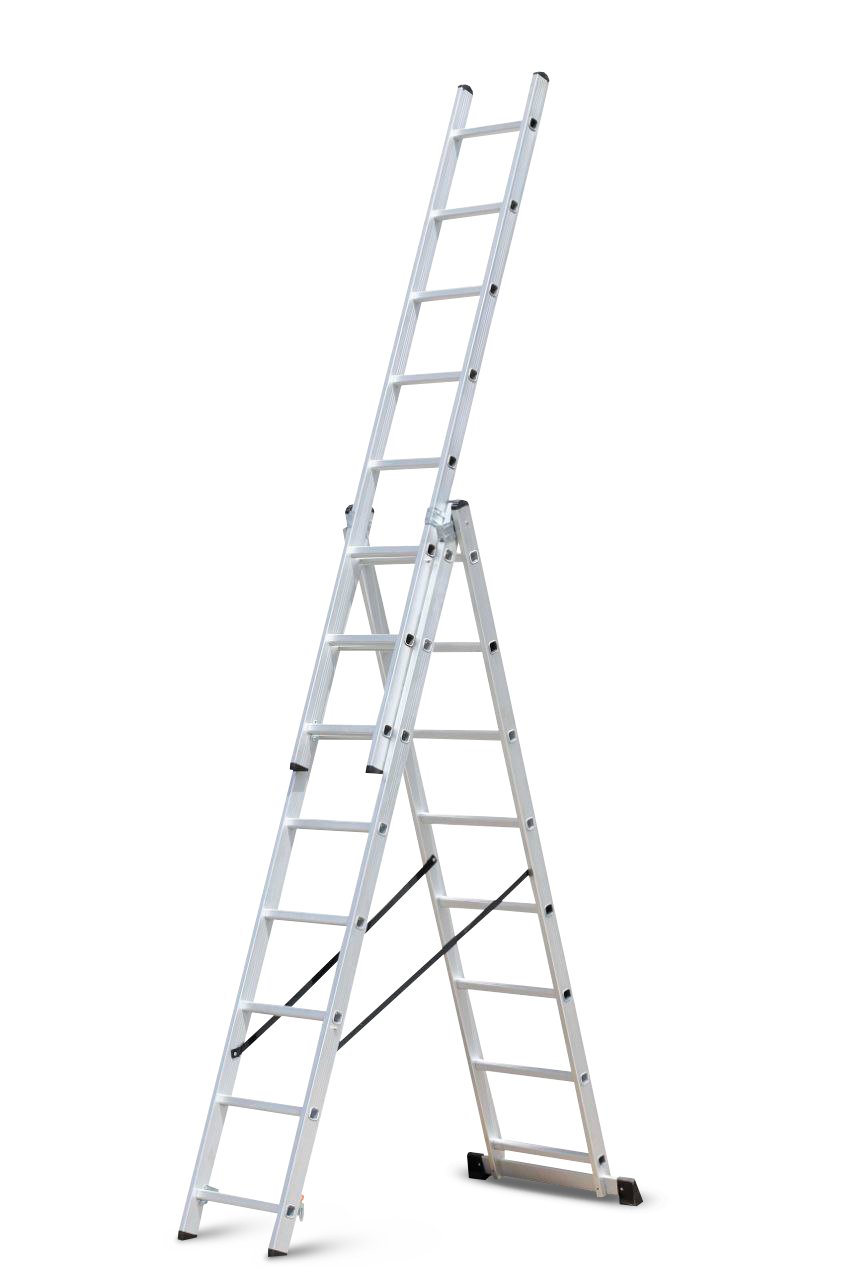 Žebřík hliníkový třídílný Procraft pro všestranné použití z odolného a lehkého hliníku. Vybaven speciálními protiskluzovými nožičky, které zajišťují nejvyšší bezpečnostní standard. Žebřík odpovídá evropským normám bezpečnosti, jsou schváleny a certifikovány dle EN131. Robustní a kvalitní konstrukce s vysokým madlem.