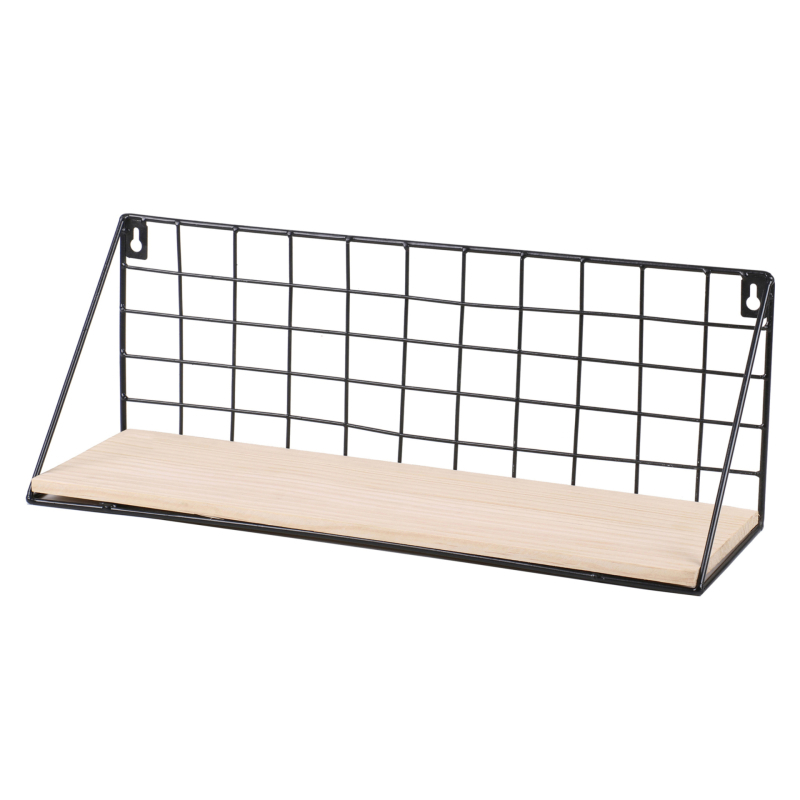 DOCHTMANN Nástěnná police obdelník 45 x 13 x 16cm, kov, dřevo, černá