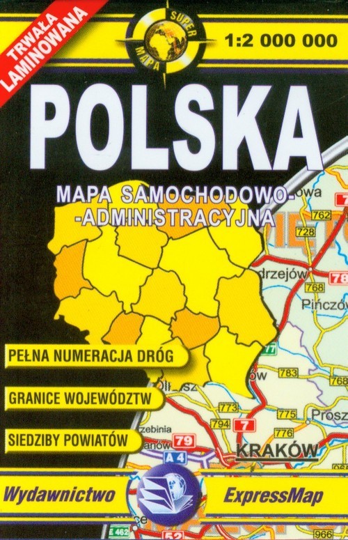 składaniu i trwała mapa samochodowo-administracyjna Polski w skali 1:2 000 000