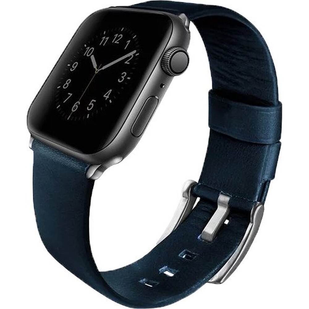 UNIQ Mondain kožený řemínek Apple Watch 45/44/42mm tmavě modrý