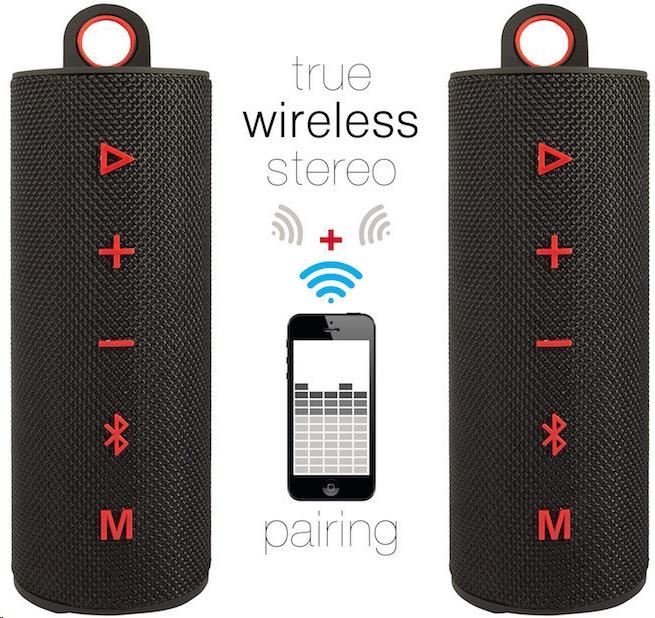 Přenosný Bluetooth reproduktor, Bezdrátové Bluetooth přehrávání, možnost spárovat toto zařízení s jinými zařízeními, Podpora Bluetooth profilů A2DP, AVRCP, Funkce True wireless stereo, Odolný vůči stříkající vodě, Širokopásmový reproduktorový systém poskytující čistý a dynamický stereo zvuk, FM...
