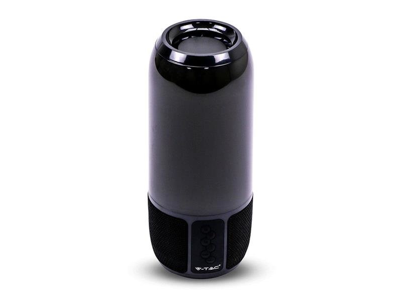 RGB LED stolní lampa s 6W reproduktorem Bluetooth a možností připojení zařízení díky portům USB, Micro USB, AUX a Micro SD. Vyrobeno z ABS plastu, k dispozici ve 3 různých barvách, s centrální částí v lesklé černé barvě. Válcový a futuristický design s tělem, které lze umístit na jakýkoli plochý povrch. Díky RGB LED umístěným ve střední části lampy bude možné synchronizovat RGB světlo s rytmem hudby a vytvořit tak jedinečnou atmosféru.