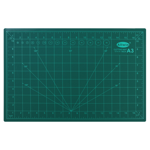 - Vyznačené stredové lišty a uhlové vodiaċka pre jednoduché meranie a presné rezanie geometrických tvarov.