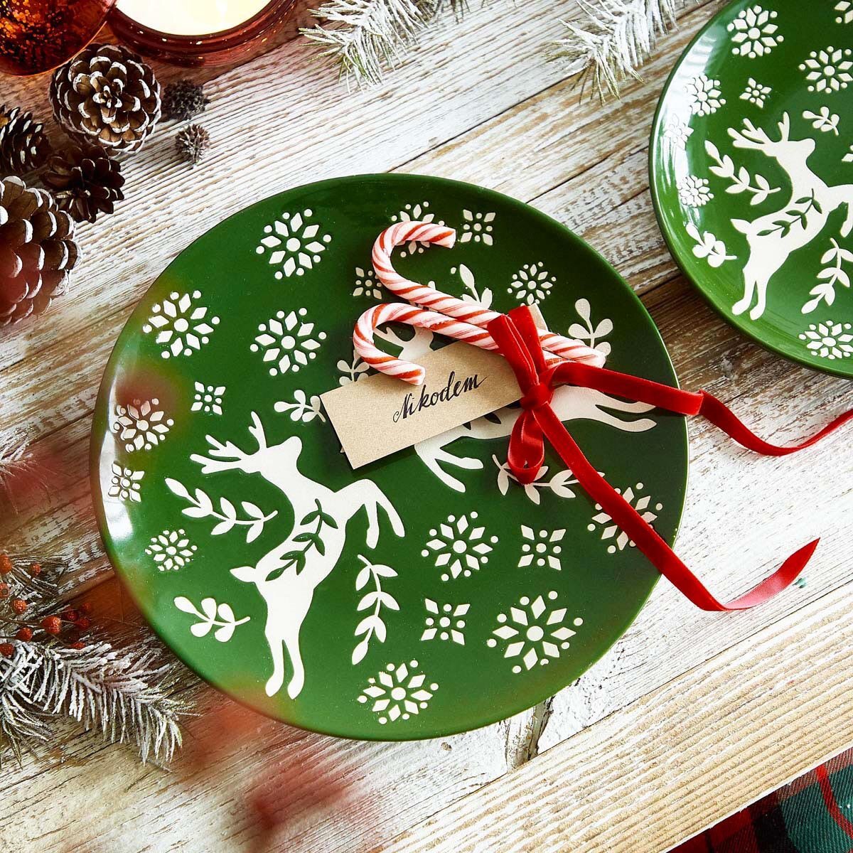 Talíř | AVERO | zelený s jelenem | 27 cm | 870595 Homla