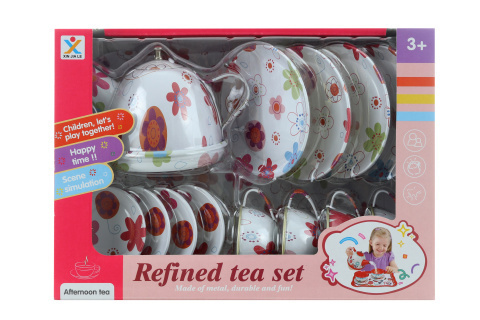 Čajový plechový set s kytičkami. Baleno v krabici. Sada obsahuje konvici, 4 talířky, 4 podšálky a 4 hrnečky. Rozměry balení cca 24x17,5x9,5 cm. Věk 3+ prečítať celé