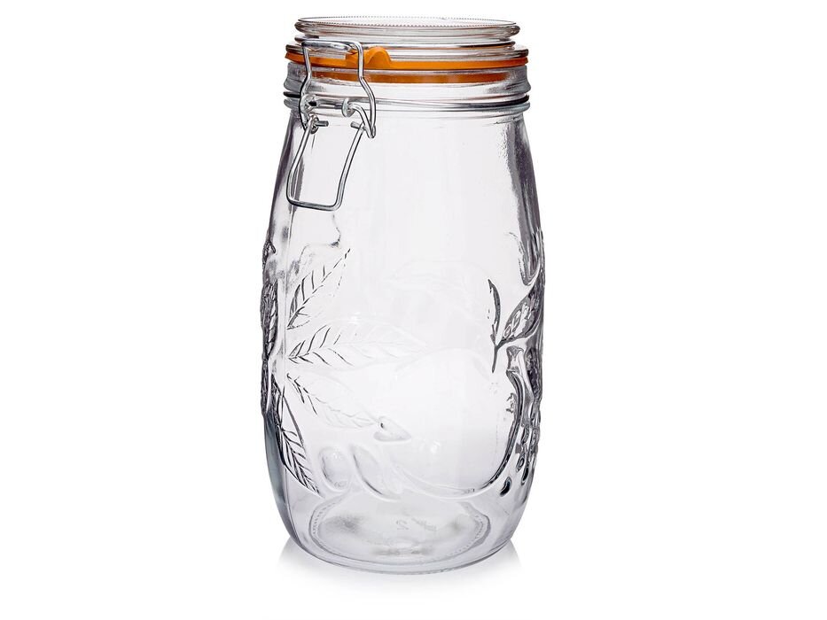 Dóza s objemom 1,5 litra je ideálnym pomocníkom v každej domácnosti. Je vyrobená zo skla a zdobí ju jemný reliéf v tvare ovocia, čo jej dodáva príjemný a prirodzený vzhľad. Vďaka patentnému uzáveru je skladovanie zdravých potravín bezpečné a vzduchotesné.