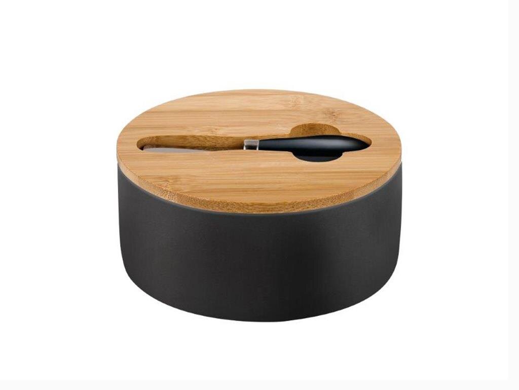 KULATÁ MÁSLENKA ADRIA S VÍČKEM A NOŽÍKEM - ČERNÁ