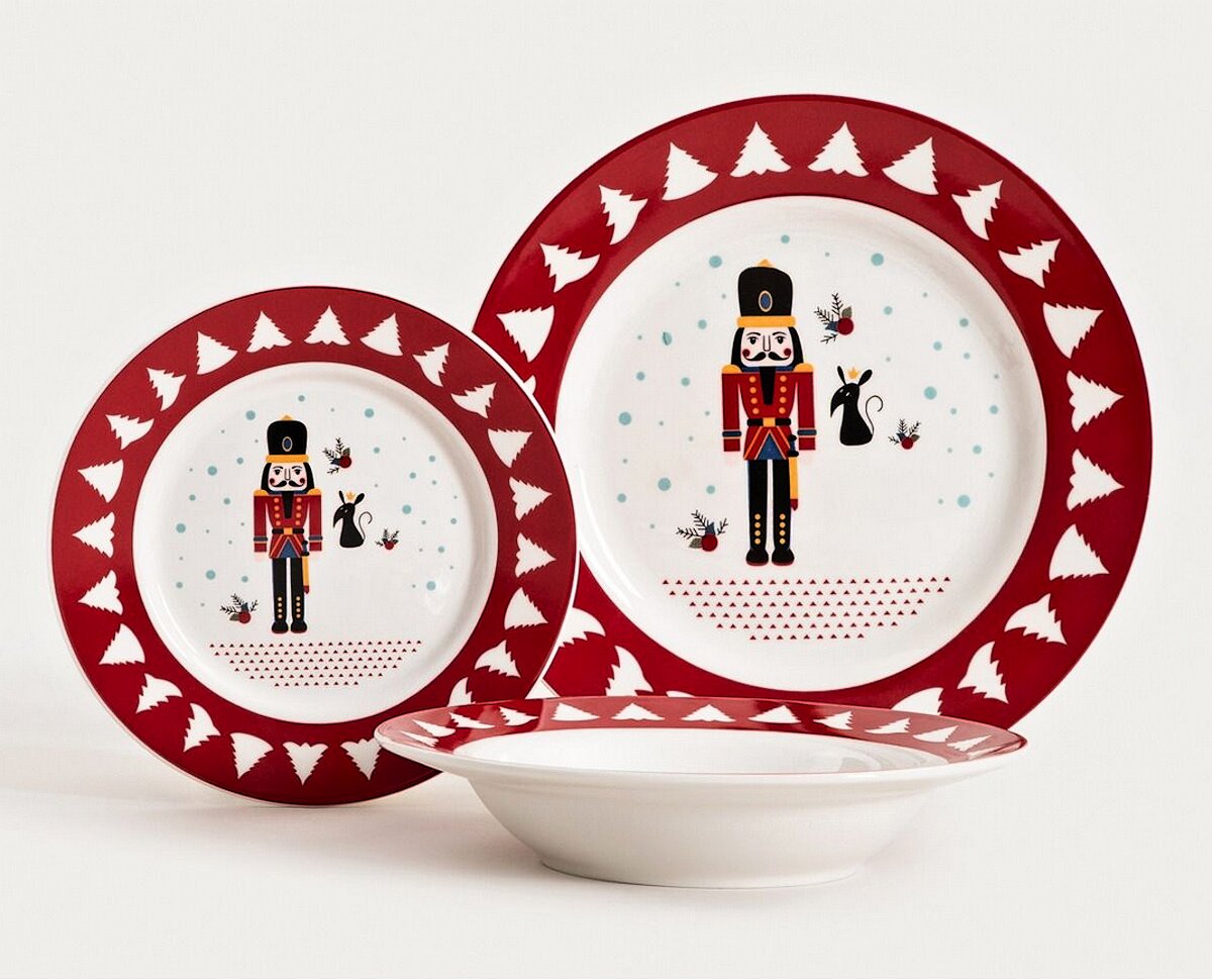 Kompletní jídelní servis - Elegantní porcelán - Vánoční dekorace - 3 druhy talířů - Sada porcelánových talířů 12 ks s motivem LouskáčekSada talířů má originální vánoční dekorace v červených barvách. Okouzlující dekorativní motiv na talířích odkazuje na pohádku Louskáček. Sada talířů bude na...