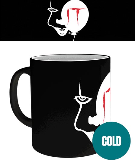 Oficiální hrnek a doplňkové zboží z katalogu produktů se znakem, grafikou hororového filmu IT.Zboží je legálně licencováno a prodáváno se souhlasem vlastníků licenčních práv.Černý tepelně se měnící hrnek s grafikou filmu IT Pennywise.Objem hrnku: 300 mlKomentář a fotografie vytvořil dovozce a...
