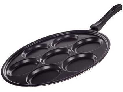 Lívanečník na 7 lievancov. priemer: 29 cm materiál: uhlíková oceľ s nepriľnavým povrchom sila materiálu: 0,5 mm plastová rukoväť s otvorom pre možnosť zavesenia prečítať celé