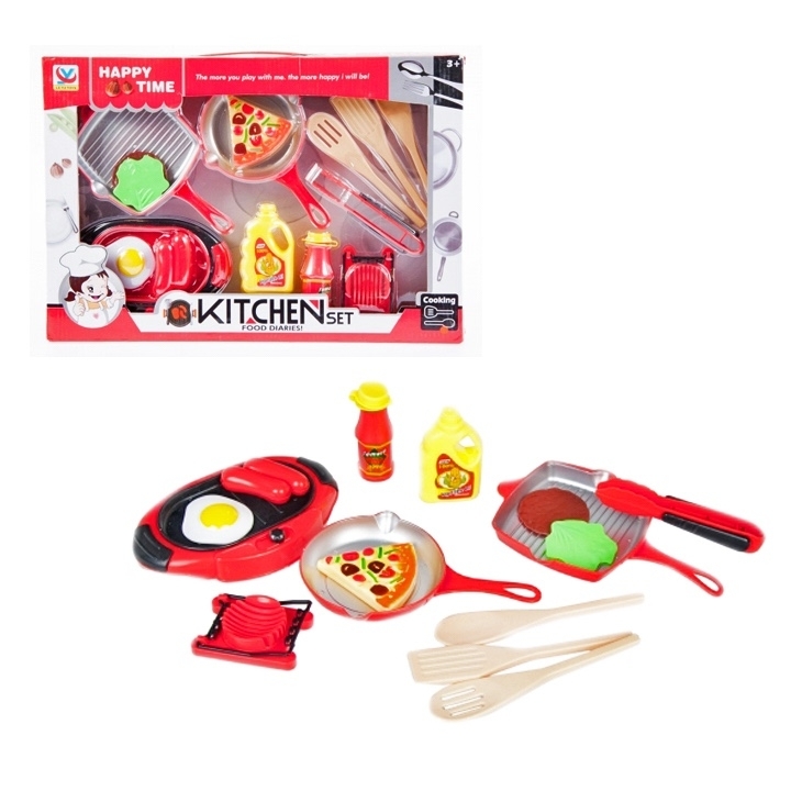 S kuchyňskou soupravou se vaše dítě může stát skutečným kuchařem a připravovat každé jídlo! Vše je vyrobeno z plastu. Hračka je určena pro děti ve věku od 3 let. Obsah sady: b> kousek pizzy, maso, salát, klobásy, vajíčko, kulatá pánev, čtvercová grilovací pánev, pánev, olej, kečup, kráječ,...