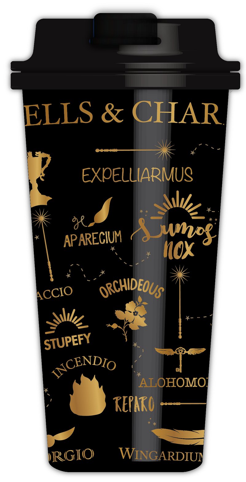 Cestovní hrnek s víčkem inspirovaný kouzly a zaklínadly ze ságy Harry Potter.
