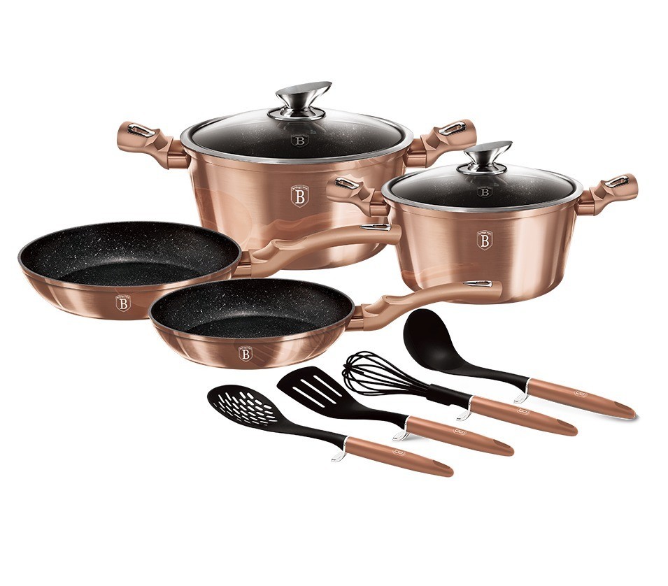 - doménou této sady je 3vrstvý povrch s mramorovým designem charakteristický svou dokonalou nepřilnavostí, žádné potraviny se nepřipalují a díky tomu se kastroly i pánve velice snadno čistí
