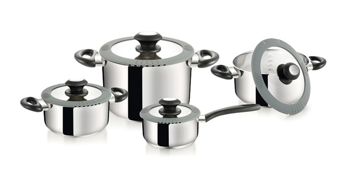 Nádobí s unikátními poklicemi SmartCOVER s pružným okrajem pro odkládání naběraček, pěnovaček, lžic a vařeček během vaření a snadné cezení. Vyrobeno z prvotřídní nerezavějící oceli, skleněná poklice s okrajem ze žáruvzdorného silikonu. Vhodné pro všechny typy sporáků včetně indukčních, vhodné do myčky. 5 roků záruka.